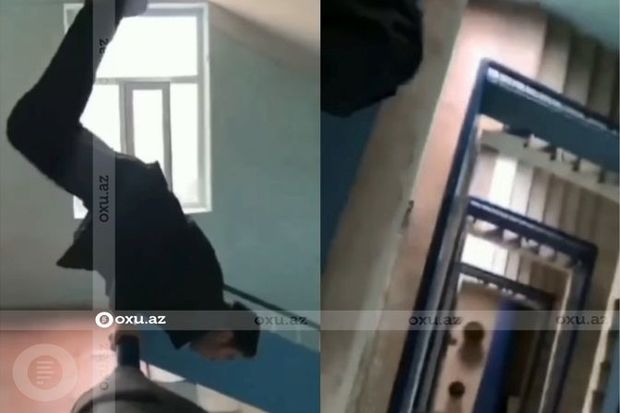 Görüntülərdə tələbə yoldaşları tərəfindən videosu çəkilən gəncin mühəccərdən tutaraq riskli hərəkətlər edərkən tarazlığını itirərək hündürlükdən yıxıldığı anlar əks olunub.